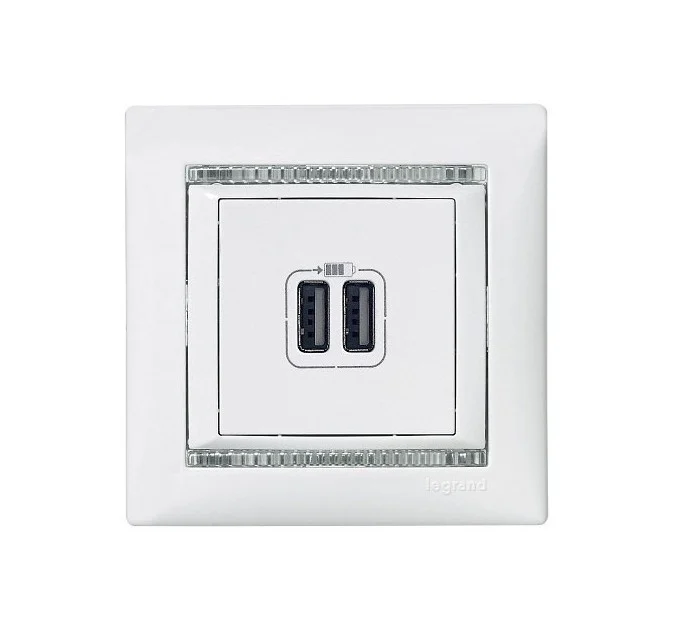 Πρίζα Φόρτισης 2XUSB Χωνευτή Λευκό