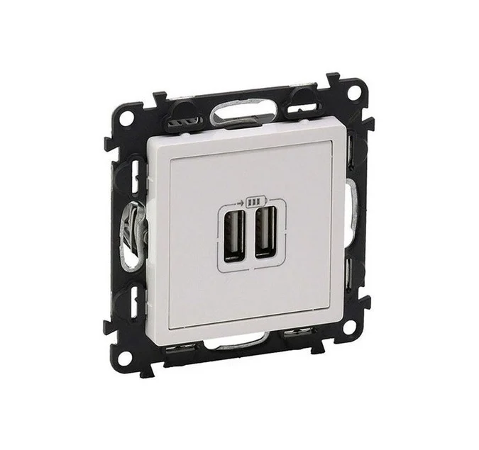 Πρίζα Φόρτισης 2XUSB Χωνευτός Λευκό