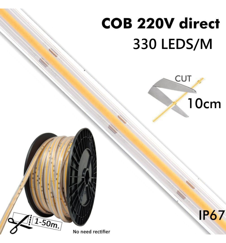 Ταινία Led 220V-240V AC Bridgelux cob 10W/m 5700K (50m) 330Led/m