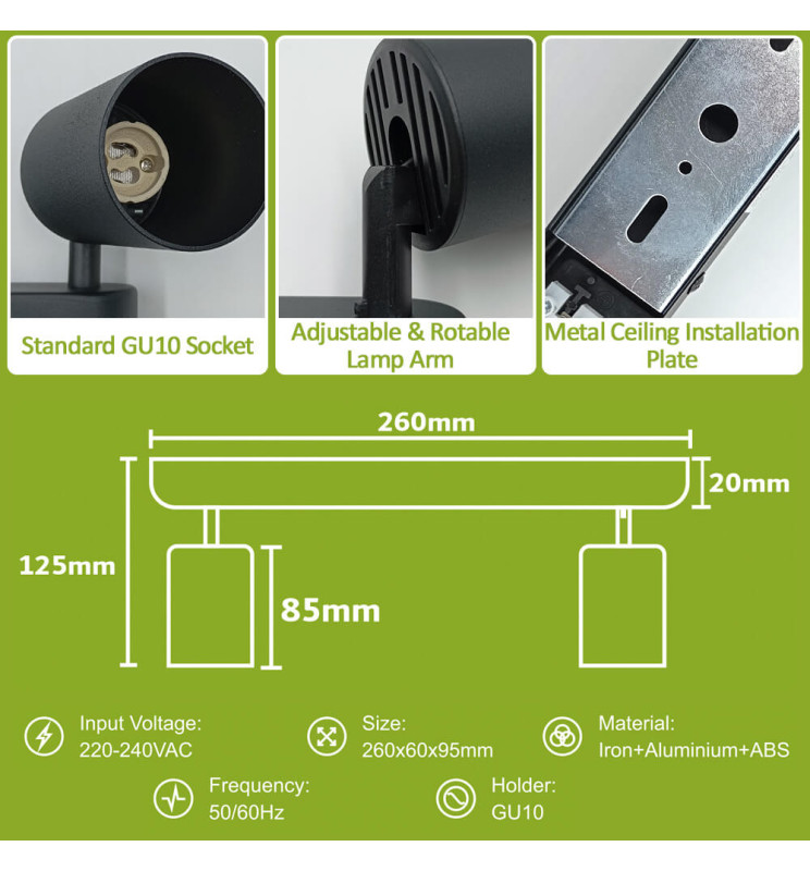 Φωτιστικό Οροφής for two GU10 Lamp Black