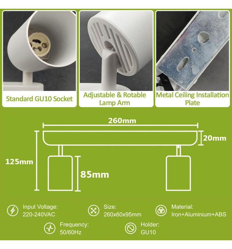 Φωτιστικό Οροφής for two GU10 Lamp White