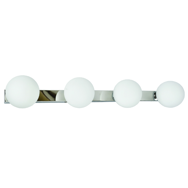 Πρόκειται για ένα επιτοίχιο φωτιστικό από χρώμιο μέταλλο λευκή οπαλίνα και τέσσερις λαμπτήρες. Η μίνιμαλ σχεδίαση και το σχήμα του το τοποθετεί σε μοντέρνους χώρους εσωτερικής διακόσμησης. Τοποθετείται και ως φωτιστικό οροφής!