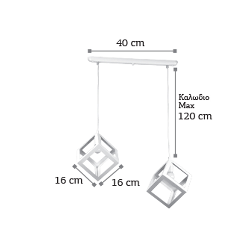 Πρόκειται για ένα μεταλλικό κρεμαστό φωτιστικό σε χρώμα λευκό. Η μίνιμαλ γεωμετρική του σχεδίαση το τοποθετεί σε οποιονδήποτε μοντέρνο εσωτερικό χώρο. Η ανάρτησή του ρυθμίζεται για να λάβει το επιθυμητό ύψος. Το φως διαχέεται σε όλον τον χώρο ομοιόμορφα.