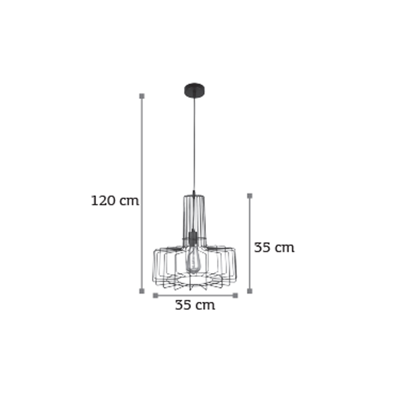 Πρόκειται για ένα μαύρο μεταλλικό κρεμαστό φωτιστικό σε ιδιαίτερη διάτρητη σχεδίαση. Η ανάρτησή του είναι ρυθμιζόμενη για να προσαρμόζεται στον κάθε χώρο.