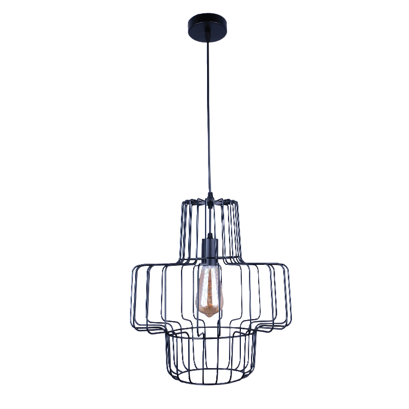 Πρόκειται για ένα μαύρο μεταλλικό κρεμαστό φωτιστικό σε ιδιαίτερη διάτρητη σχεδίαση. Η ανάρτησή του είναι ρυθμιζόμενη για να προσαρμόζεται στον κάθε χώρο.