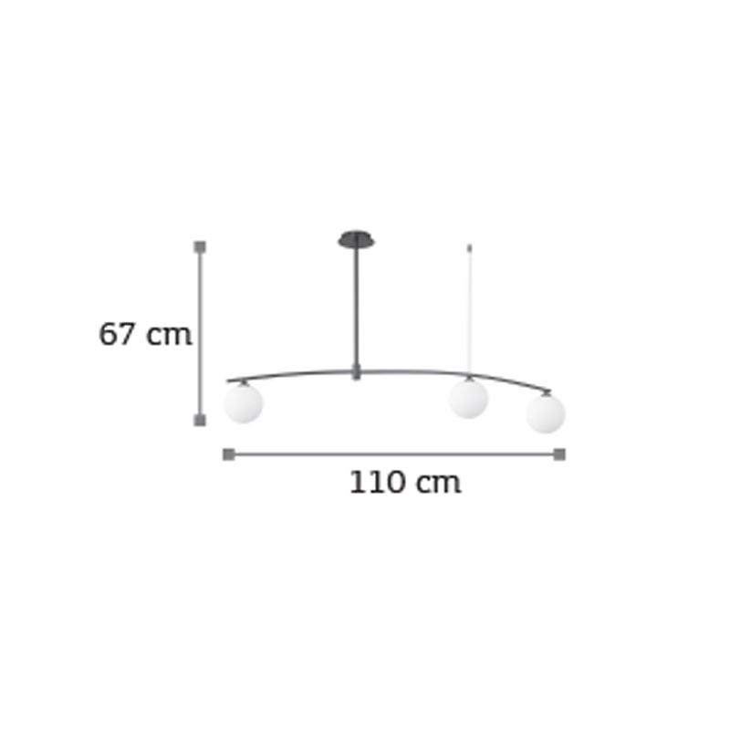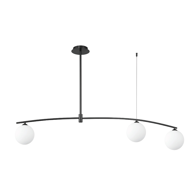 Πρόκειται για ένα μαύρο μεταλλικό φωτιστικό με λευκή οπαλίνα στο τελείωμα και τρεις λαμπτήρες. Η μίνιμαλ σχεδίασή του το τοποθετεί ιδανικά σε οποιονδήποτε μοντέρνο εσωτερικό χώρο.