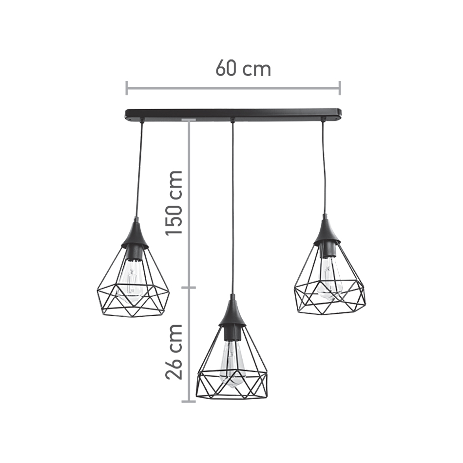 InLight Κρεμαστό φωτιστικό από μαύρο μέταλλο 3XE27 D:60cm