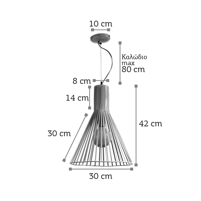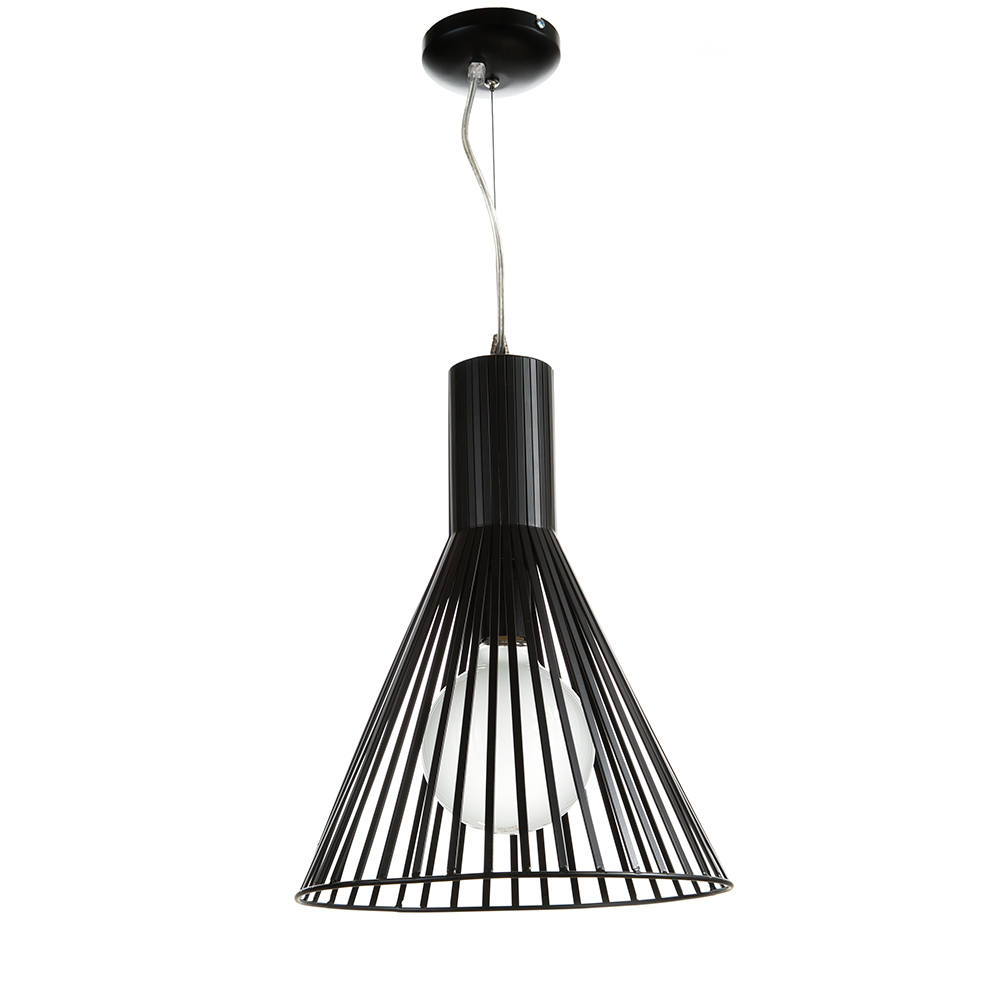 Πρόκειται για ένα μαύρο μεταλλικό κρεμαστό φωτιστικό σε κωνική διάτρητη σχεδίαση. Μπορεί να τοποθετηθεί είτε μόνο του είτε δύο ή τρία μαζί σε ροζέτα ή ράγα. Η ανάρτησή του είναι ρυθμιζόμενη για να προσαρμόζεται στον κάθε χώρο.