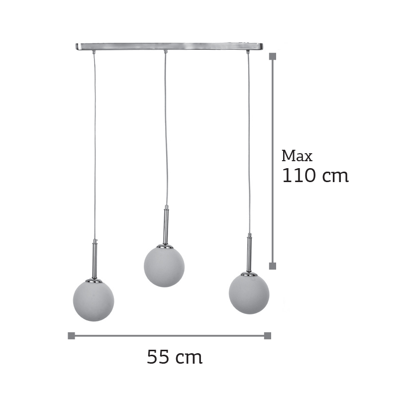 οπαλίνα και τρεις λαμπτήρες. Το ύψος