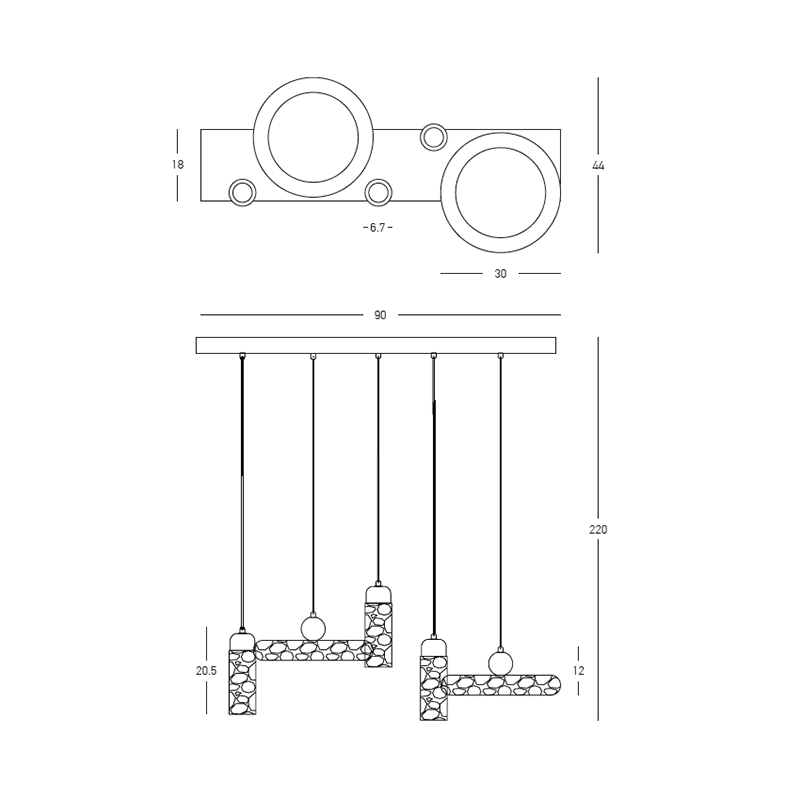PENDANT LED LINE LIGHT 44W + 3xGU10 MAX 10W NATURAL STONE - BROWN WOOD quantity
